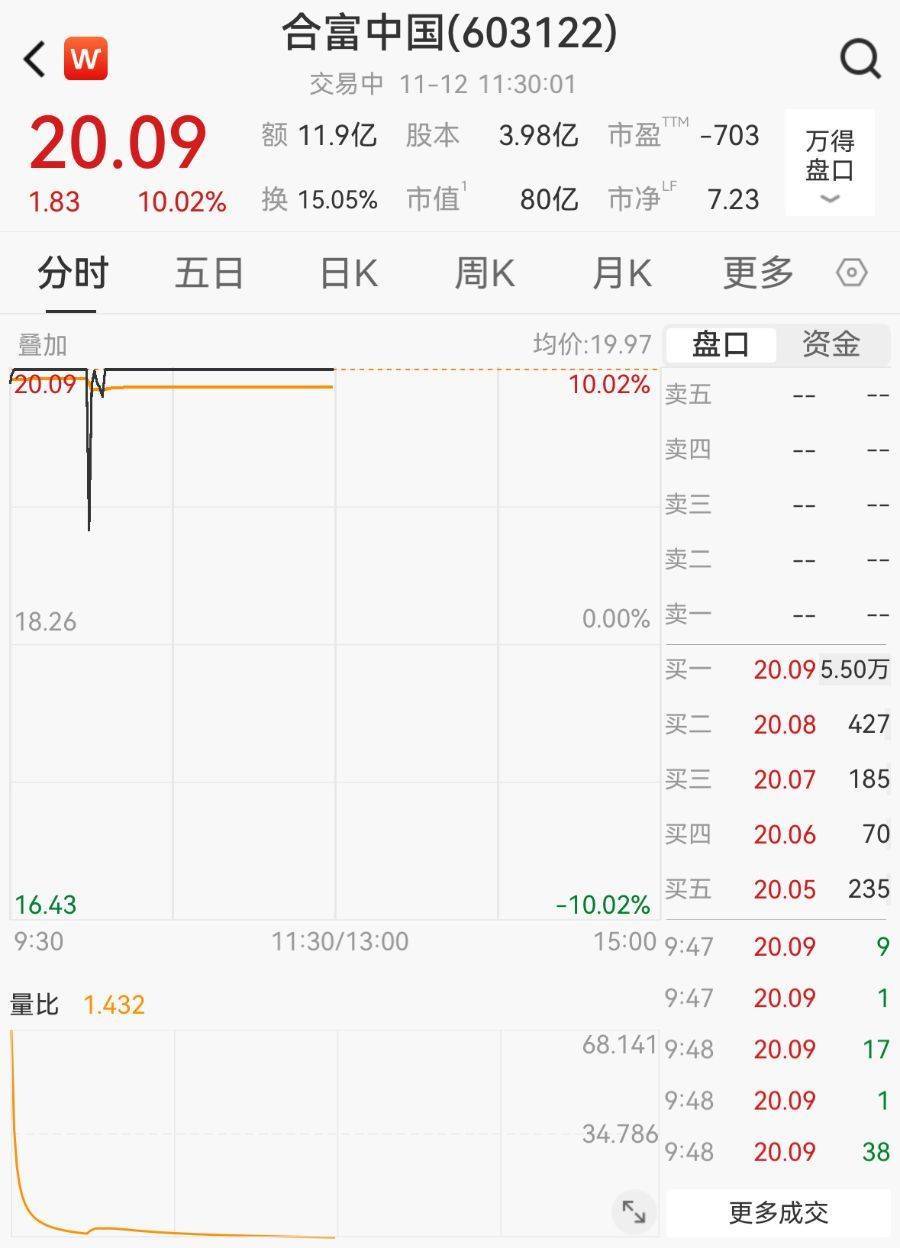 在连发9道风险提示后,11月12日,合富中国(603122.SH)再度涨停,截至午间收盘,报20.09元/股正规杠杆配资平台,总市值为79.97亿元。在最近12个交易日内,合富中国共斩获11个涨停板,股价涨幅超过200%,受到市场广泛关注。